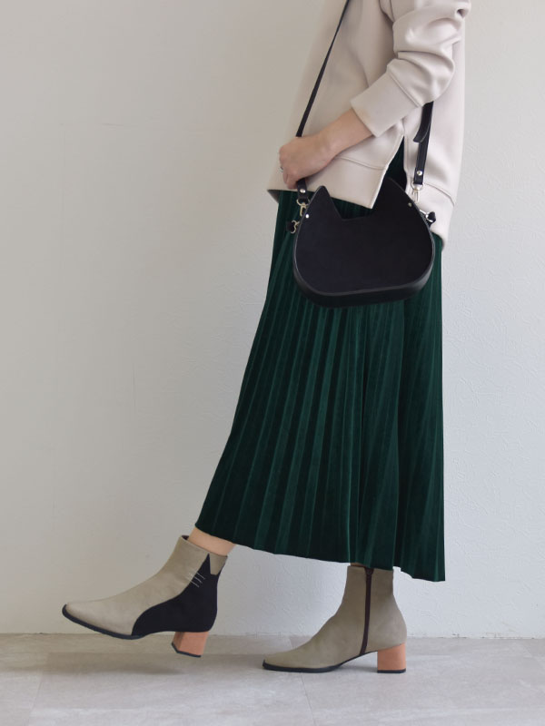 さりげない猫のシルエットとのトリオカラーが大人かわいい。