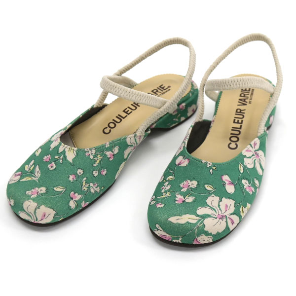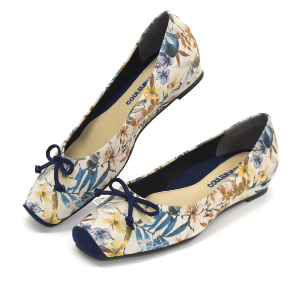 クロールバリエ スクエアトゥバレエパンプス(花刺繍)